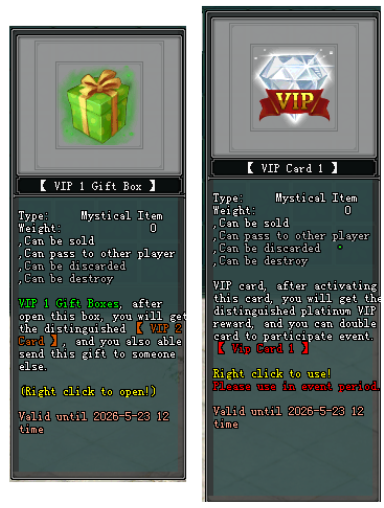 - បន្ទាប់ពីបើក【VIP 2 Gift Box】ជាលើកដំបូងនឹងទទួលបាន【VIP Card 2】ចំនួន ១សន្លឹក និង រង្វាន់.