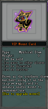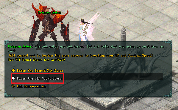 អ្នកកម្សាន្តអាចធ្វើការយក VIP Mount Card ទៅប្តូរជាមួយ NPC: Crimson Amber ដែលមាននៅគ្រប់ទីក្រុងទាំងអស់។